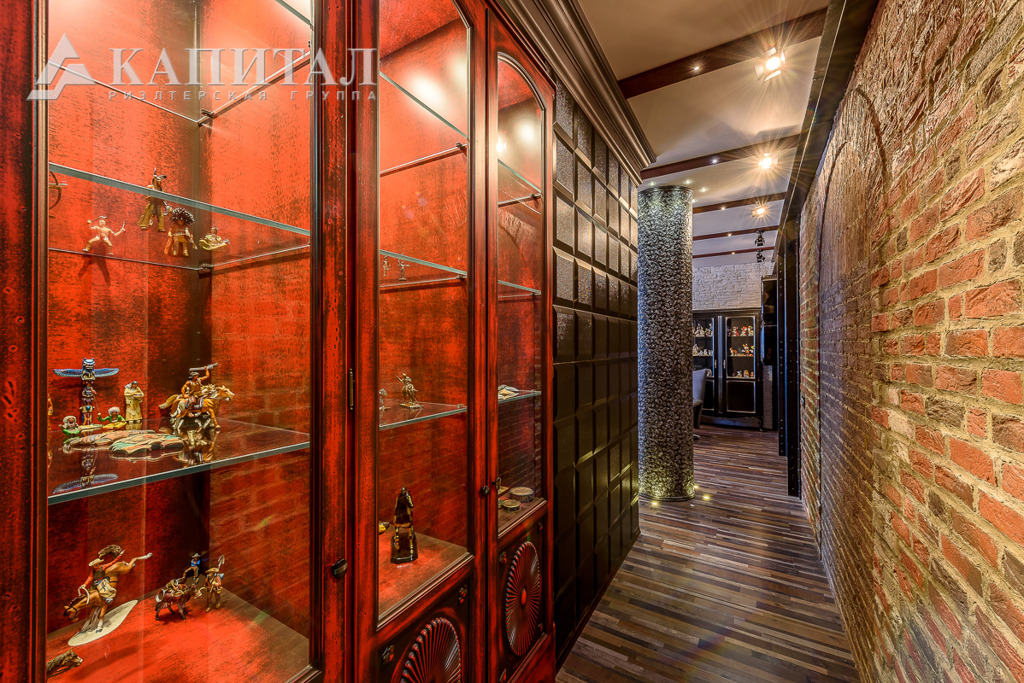 Как сообщается в объявлении, в квартире сделан дизайнерский ремонт в стиле арт-деко. Она оснащена зимним садом, столовой-гостиной площадью более 50 «квадратов», встроенной библиотекой и отдельной гардеробной комнатой.