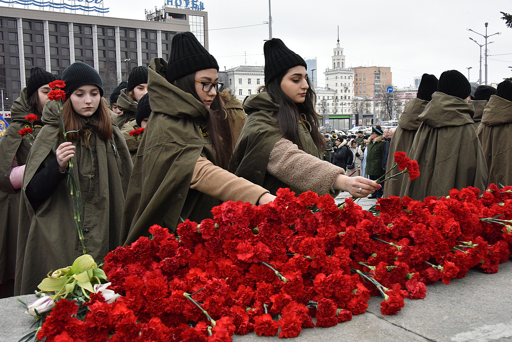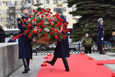 В торжественно-траурной церемонии приняли участие также председатель Законодательного собрания региона Людмила Бабушкина, члены областного правительства, депутаты, руководители городской администрации, ветераны, представители общественности, волонтеры. Корзины цветов сегодня по традиции возложили солдаты роты почетного караула Центрального военного округа.
