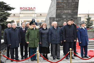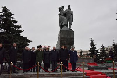Губернатор Евгений Куйвашев возложил цветы к памятнику, установленному на Привокзальной площади в Екатеринбурге.