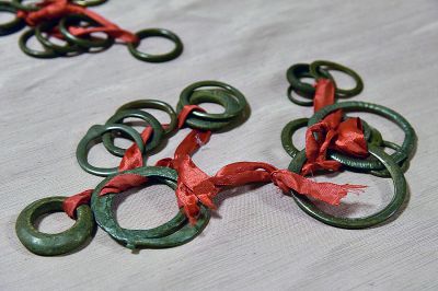 Сегодня журналистам показали археологические артефакты. Это наконечники багра, рыболовные крючок и стрела, бронебойные наконечники стрел, кольца, подвески, колокольчики.