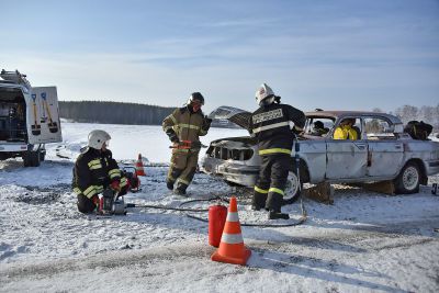 По сигналу диспетчера регионального управления автодорог спецтранспорт расчистил опасный участок дороги. В течение нескольких минут к «месту происшествия» подъехал экипаж ГИБДД для выяснения обстоятельств случившегося. Автоинспекторы вызвали службы МЧС и центра медицины катастроф. Спасатели разрезали «разбившуюся» Волгу, извлекли пострадавших, одного из которых эвакуировал вертолет. Позже прибыл пожарный расчет, чтобы не допустить возгорания легковушки.
