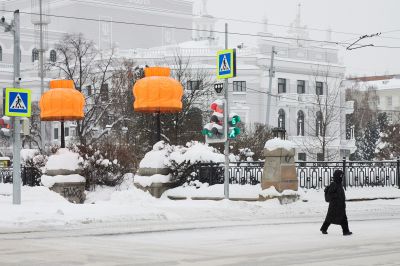 Уличный художник Тимофей Радя вновь украсил фонари на аллее у театра «Урал Опера Балет» оранжевыми абажурами. Их установили в ночь на 12 января.