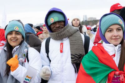 Также в церемонии приняли участие иностранные участники Всемирного фестиваля молодежи.