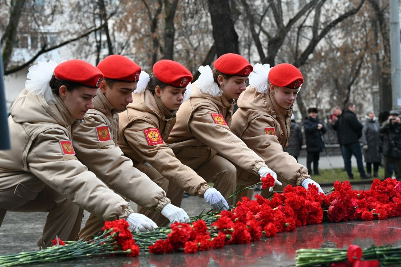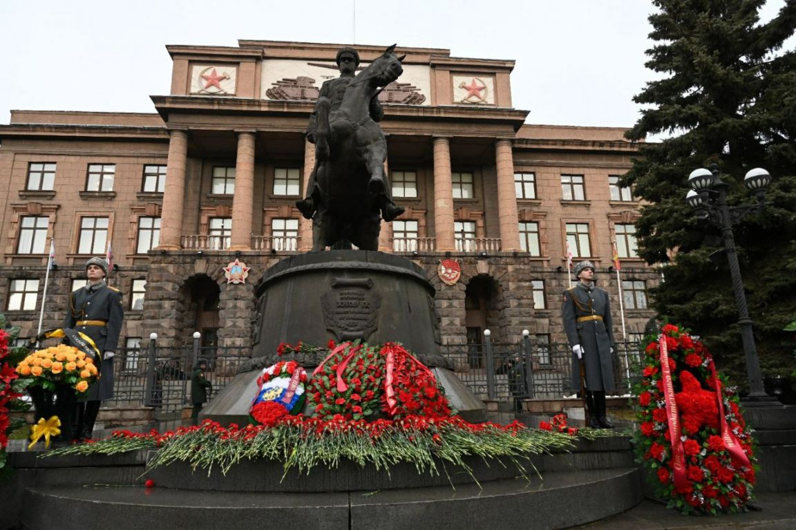 Празднование 15-летия со дня образования Центрального военного округа началось с церемонии возложения цветов к памятнику маршалу Георгию Жукову на проспекте Ленина.