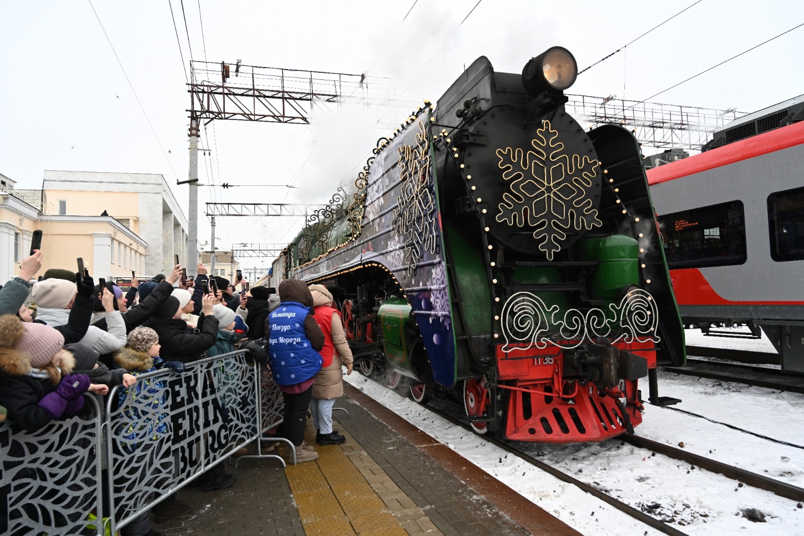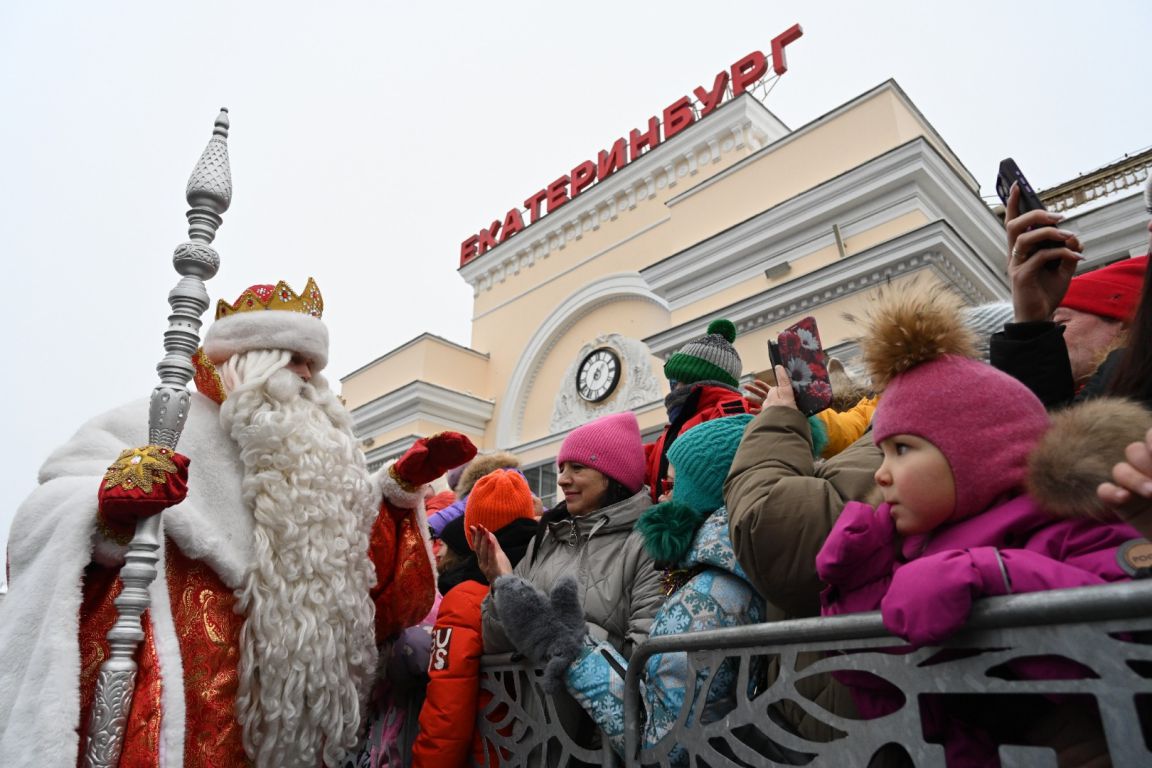 На железнодорожный вокзал Екатеринбурга поезд Деда Мороза прибыл в 13 часов. Главного зимнего волшебника ждал теплый прием, который ему устроили жители и гости Екатеринбурга.