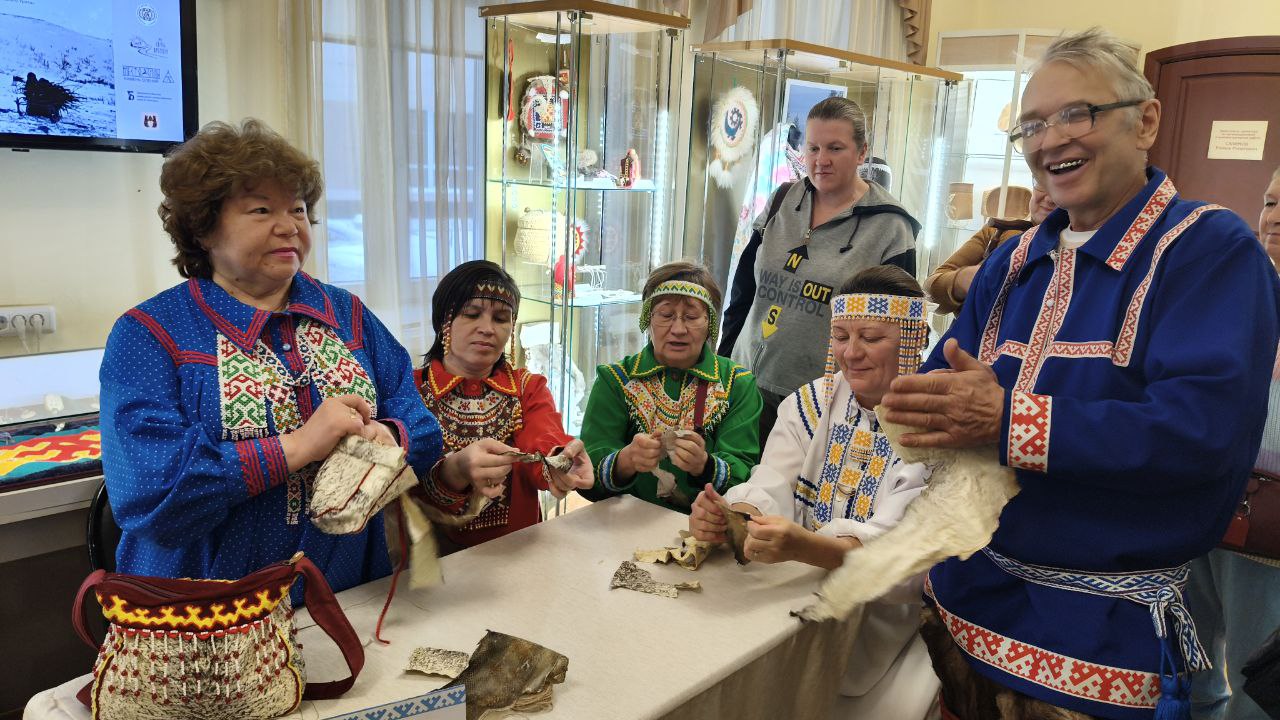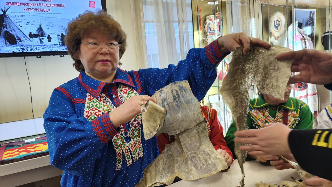 Гости поучаствовали в мастер-классе по выделке рыбьей кожи от мастера — представителя народа манси Татьяны Тарасовой.