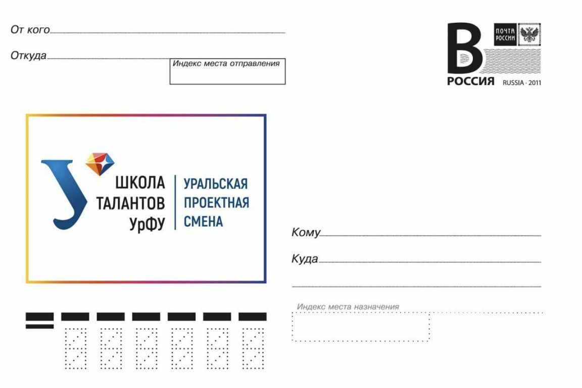 Почта России и Уральский федеральный университет к 10-летию Уральской проектной смены — одного из ключевых образовательных проектов Свердловской области — выпускают в обращение уникальную почтовую карточку с литерой «В». Она будет отпечатана ограниченным тиражом в 1 000 экземпляров, сообщили в пресс-службе Свердловского филиала Почты России.