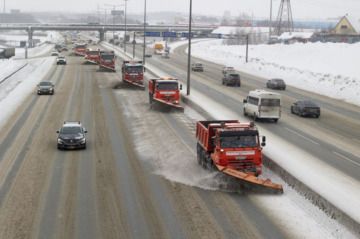 На борьбу снегом на свердловские автодороги вышло 278 комбинированных дорожных машин, 34 автомобиля с отвалом, 42 автогрейдера, 40 единиц другой техники. Для борьбы с зимней скользкостью дорожники использовали 9,2 тысячи тонн пескосоляной смеси. Об этом сообщили в департаменте информационной политики Свердловской области со ссылкой на Управления автомобильных дорог региона.