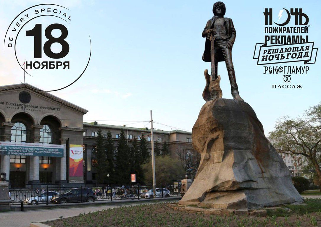 ЕКАТЕРИНБУРГ. Накануне в «Ночь пожирателей рекламы», которая пройдет 18 ноября, столицу уральского рока украсили памятники известным рок-музыкантам. Если быть точнее, то авторы проекта представили любопытнее фотоколлажи.