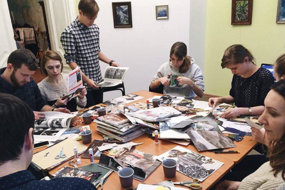Ножницы застрекотали, клеевые карандаши заскользили по бумаге, когда участники определились, как показать свой образ города. Организаторы вдохновляли: «У каждого города свои обычные граждане и городские сумасшедшие. Вам стоит вспомнить, как они выглядят, чем занимаются, где работают, как развлекаются, как одеваются, какие книги читают, каких животных держат в доме. Давайте изобразим в коллажах типичных или нетипичных субчиков, их повседневную жизнь, работу и отдых, а потом посмотрим, чем похожи и чем отличаются наши города и их обитатели».