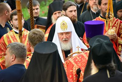 Патриарх Московский и всея Руси Кирилл возглавил 21-километровый крестный ход от Храма на Крови до монастыря святых Царственных страстотерпцев на урочище Ганина Яма.