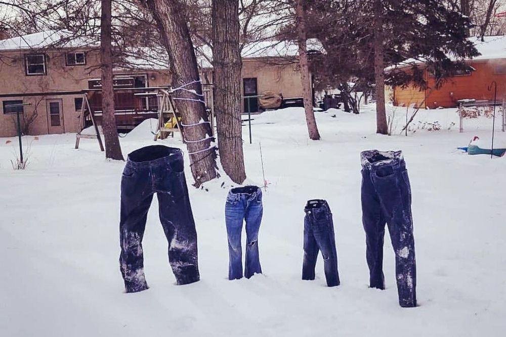 В связи с этим неунывающие американцы придумали новое развлечение — оставлять мокрую одежду на морозе. Та очень быстро замерзает и становится твердой. В итоге соцсети пополнились фотографиями одиноко стоящих в сугробе штанов.