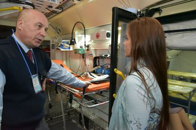 По словам организаторов, выставку старались формировать максимально разнообразно. Информационные стенды чередуются с практическими площадками, где вам могут провести скрининг печени или научить правильной гигиене полости рта. Отдельное место отведено мобильным комплексам, это все действующие установки, которые позволяют показать, как оказывается помощь в отдаленных территориях. На экспозиции, кроме машин, где можно пройти флюорографию и маммографию, можно увидеть мобильный фельдшерско-акушерский пункт, вертолет службы санавиации и даже современный мобильный медицинский комплекс для работы в ЧС.
