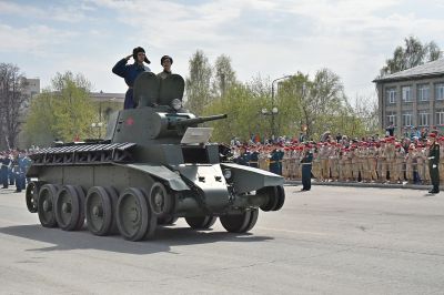 В День Победы в Верхней Пышме состоялось торжественное шествие военной техники времен Великой Отечественной войны. На главный проспект города вышло более 20 боевых машин из Музея военной техники УГМК.