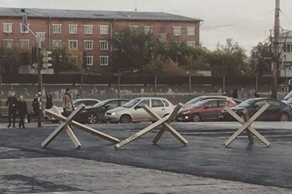 Площадь Первой Пятилетки в Екатеринбурге находится под пристальным вниманием уличных художников. Накануне на ней появились противотанковые ежи. Эта работа команды Jesus Gang.