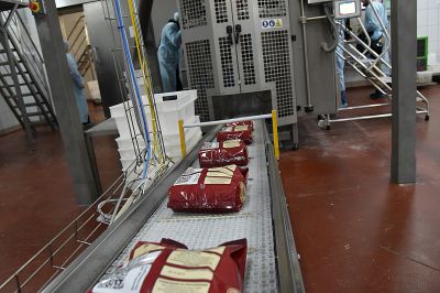 Наш фотокорреспондент Борис Ярков побывал на комбинате и запечатлел все этапы превращения мясных туш во вкусные деликатесы.