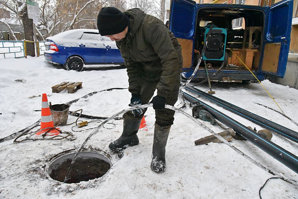 Специалисты подрядной организации продемонстрировали процесс прокладки трубопровода в одном из жилых домов в Пионерском микрорайоне Екатеринбурга.