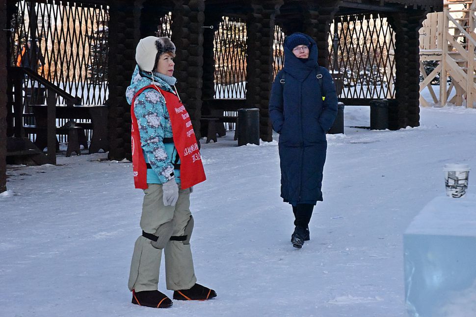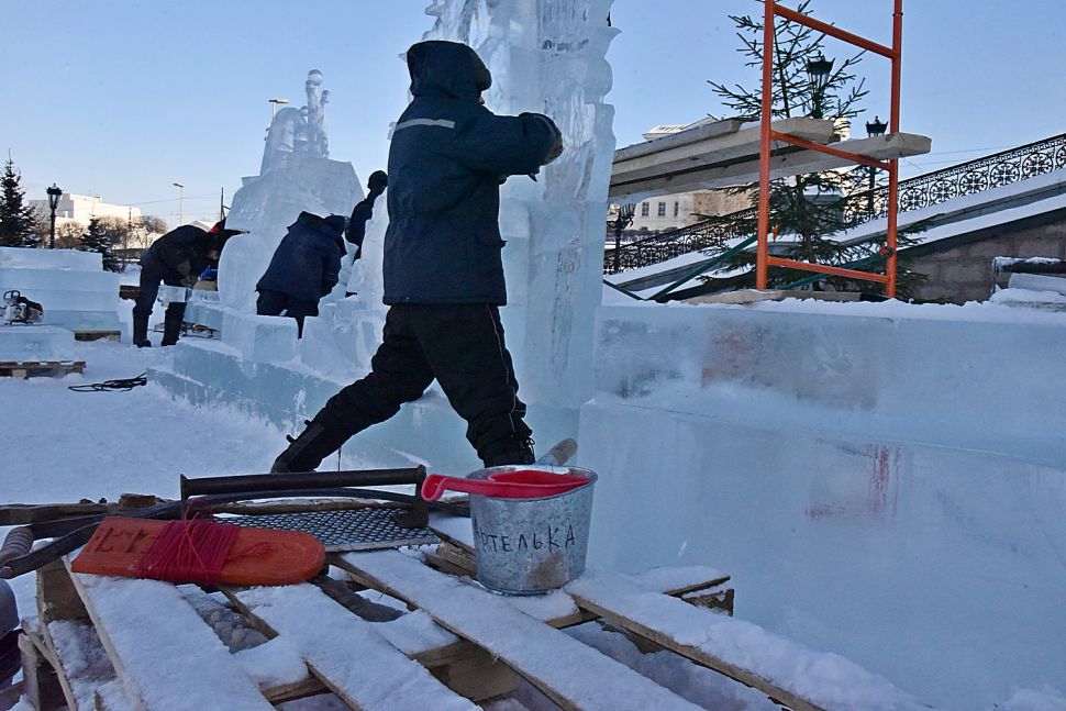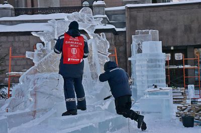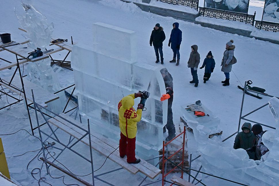 Сегодня наш фотокорреспондент Борис Ярков запечатлел, как мастера ваяют свои ледовые скульптуры.