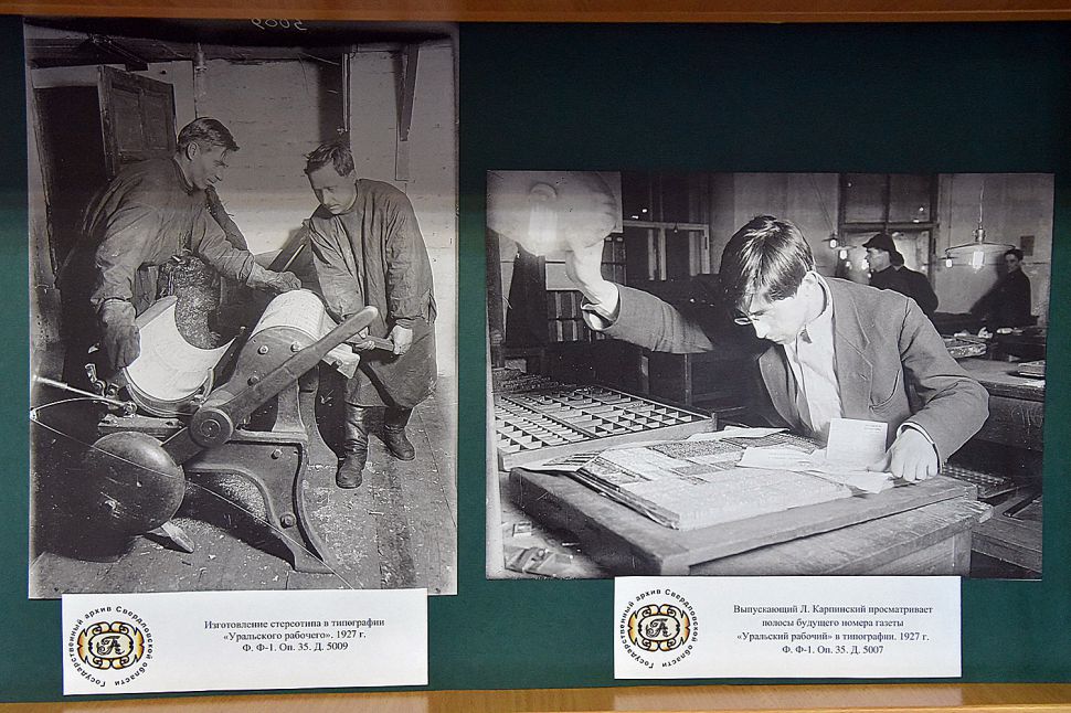 Фотографии позволяют представить процесс подготовки газеты в типографии «Уральский рабочий». Это и верстка газеты, и ретушь клише цинкографом, подготовка матрицы к стереотипированию и изготовление стереотипа. На фотографии 1927 года выпускающий редактор Л. Карпинский просматривает полосы будущего номера газеты «Уральский рабочий» в типографии.