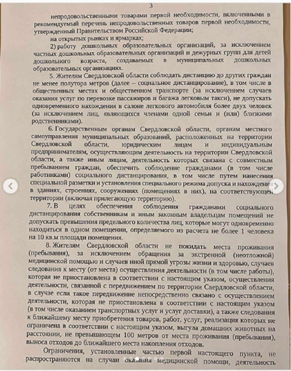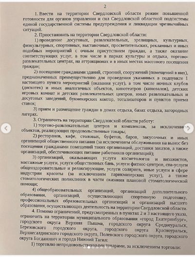 В Екатеринбурге, в Верхней Пышме, в Среднеуральске, в Березовском, в Красноуральске, в Верхней Салде, в Полевском, в Богдановиче и в Нижнем Тагиле ограничения будут сильнее, в силу большей интенсивности миграции. В остальных муниципалитетах, где эпидемиологическая ситуация спокойнее, будет разрешена торговля непродовольственными товарами, будут открыты детские сады.