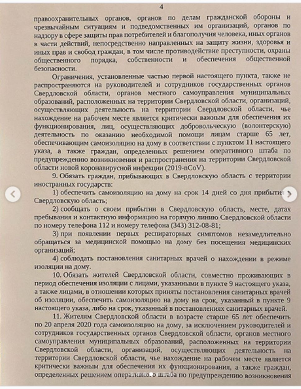 Сегодня я подписал указ, в соответствии с которым в Свердловской области смогут начать работать парикмахерские. Но обращаю внимание: речь идет только о стрижках. Также все жители Свердловской области смогут выходить из дома, чтобы получить услуги в организациях, чья работа сейчас не запрещена. При этом нормы санитарной защиты (маски, обработка рук и помещений, социальное дистанцирование) должны быть нерушимы и неукоснительны.