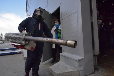 Кроме того обработка транспортных средств, площадок прибытия товара, зон проведения досмотра и отбора проб осуществляется методом «горячего тумана». Это 5-процентный раствор перекиси водорода, который распыляется специальной переносной «пушкой».