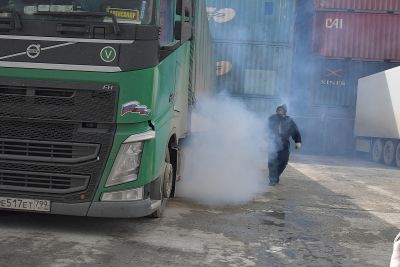 Фоторепортаж: на Екатеринбургском таможенном терминале приступили к дезинфекции импортных товаров «горячим туманом»