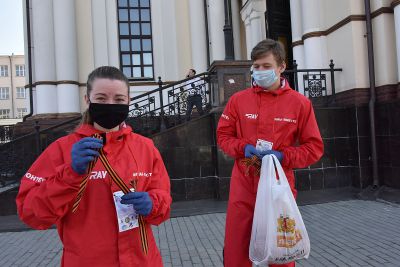 В первый день ленты стали раздавать горожанам на транспортных узлах: станциях метро и остановочных комплексах, в районе Главпочтамта. Планируется раздать порядка 30 тысяч ленточек. Часть лент доставят пожилым людям вместе с продуктовыми наборами, которые волонтеры приносят по заказу ветеранов.