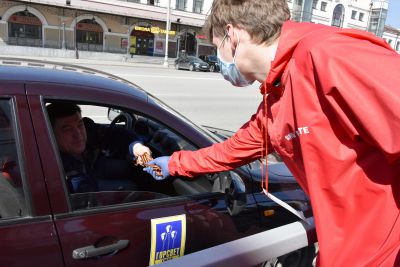 В Екатеринбурге волонтеры начали раздавать георгиевские ленты