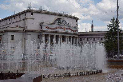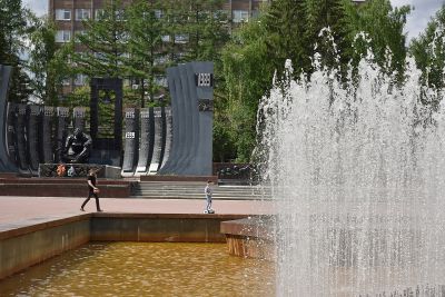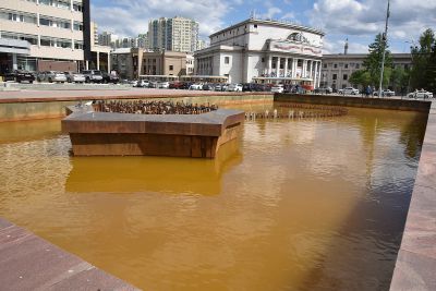 Наш фотокорреспондент Борис Ярков заснял также работающий фонтан на площади рядом с Управлением Свердловской железной дороги.