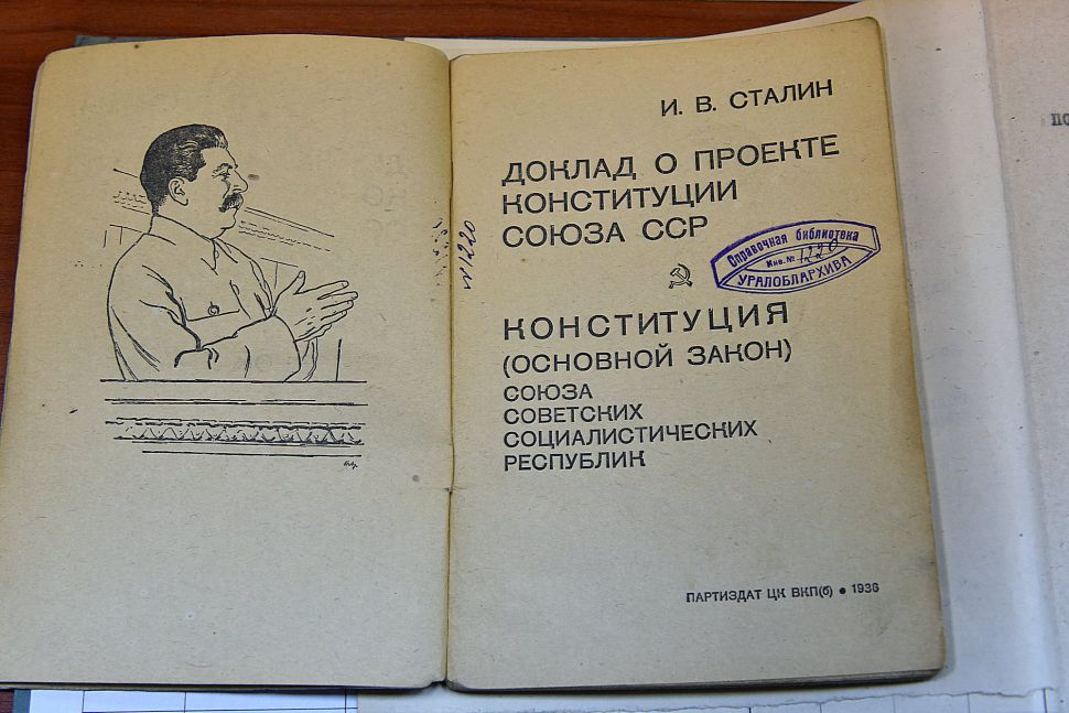 Заместитель директора Центра документации общественных организаций Свердловской области Владимир Каплюков показал журналистам документы о создании первой Конституции РСФСР в 1918 году, Конституции победившего социализма 1936 года, Конституции СССР 1942 года, Конституции развитого социализма 1977 года и уже постсоветской – 1993 года.