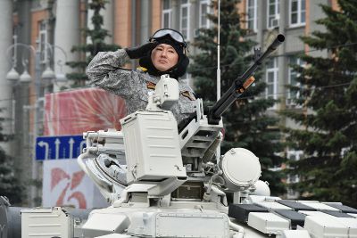 По центральной улице города прошли военные различных родов войск и боевая техника, участие приняла и военная авиация.