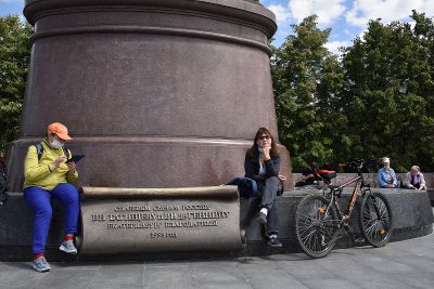 Сегодня днем у памятника отцам-основателям Екатеринбурга В.Н. Татищеву и Г.В. де Геннину прошел розыгрыш призов, приуроченный ко Дню строителя.