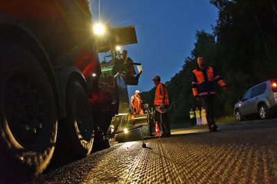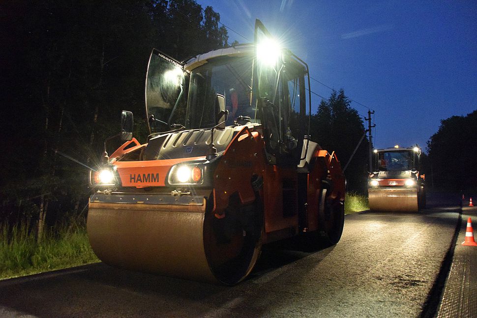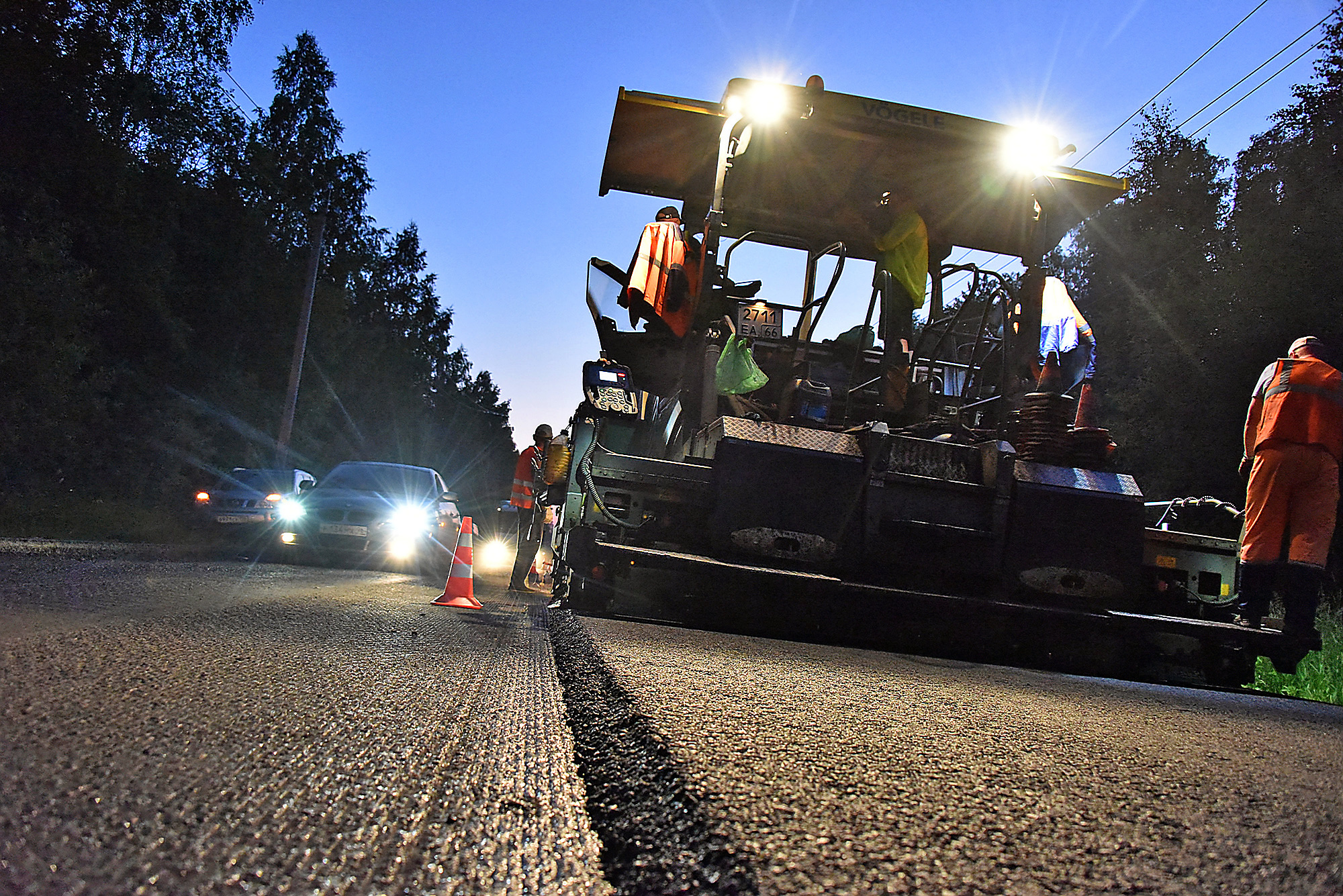 Фоторепортаж: как дорожники ремонтируют дороги ночью