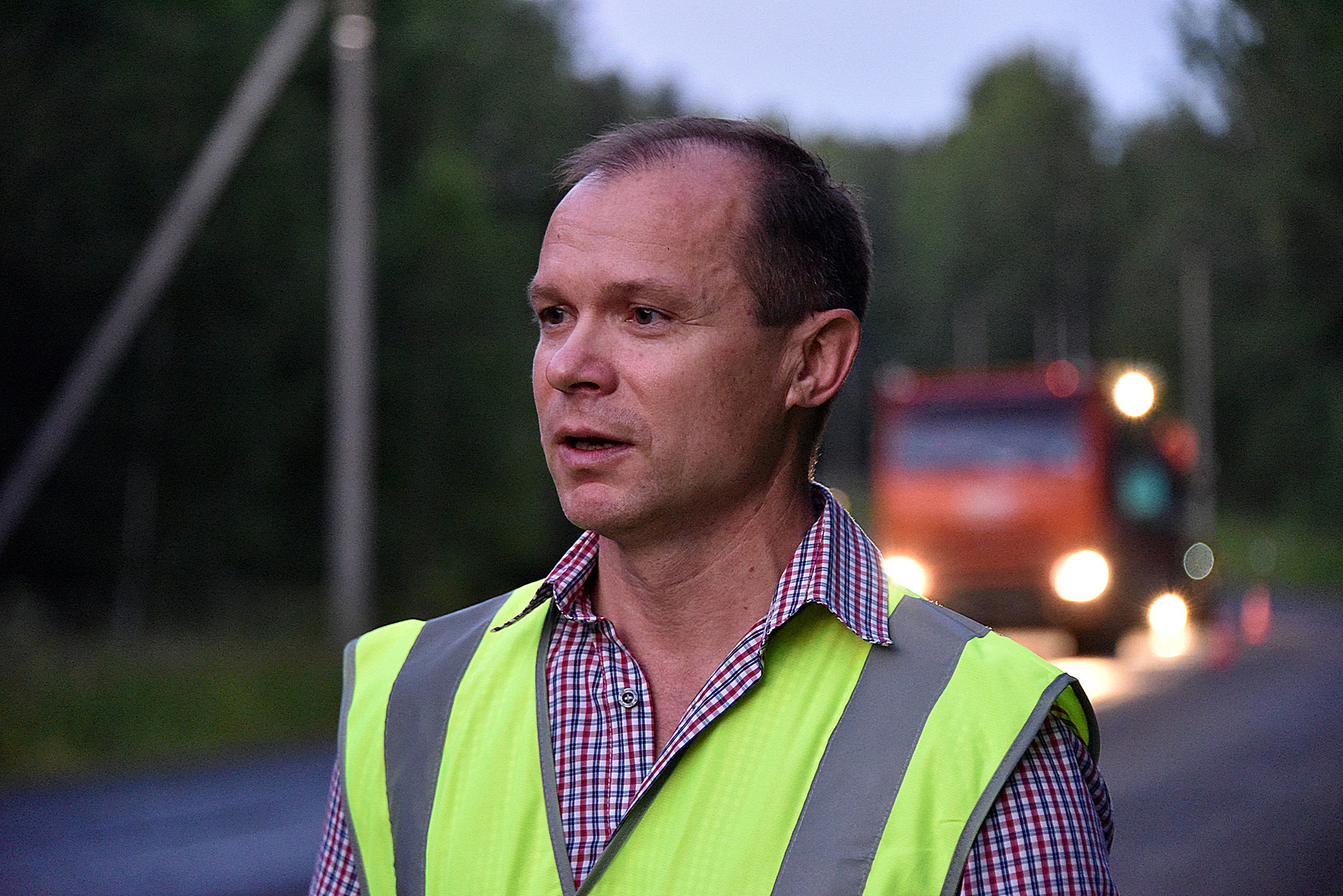 В ночь на 8 июля журналисты увидели, как при свете фар ведутся ремонтные работы на участке дороги Екатеринбург – Первоуральск.