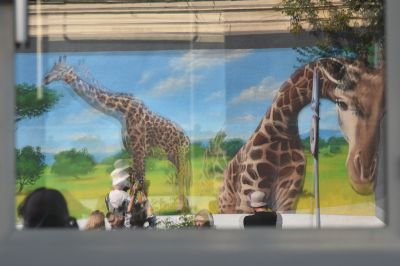 Сейчас готова одна работа. На стене трансформаторной будки напротив Дворца молодежи изображены два жирафа. Это произведение челябинского художника Тимура Бразила.