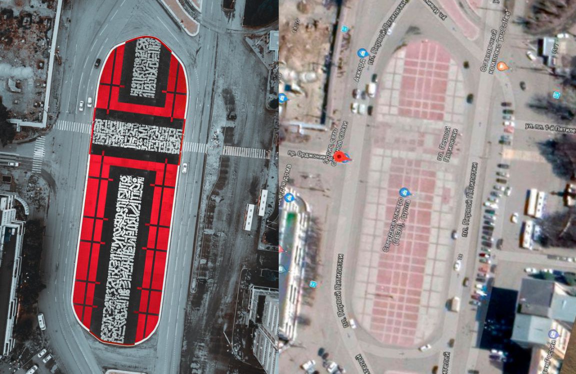 Уличный художник Покрас Лампас превратил площадь Первой пятилетки в манифест Малевича