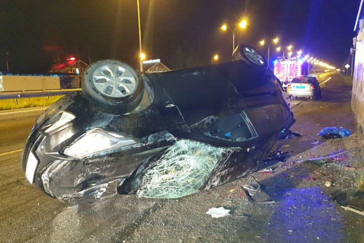 Портал Е1 сообщает, что автомобиль Hyundai Solaris въехал в заднюю часть Mitsubishi, который ехал в правом ряду. После столкновения Mitsubishi отлетел влево, в Hyundai врезался в остановку и перевернулся.