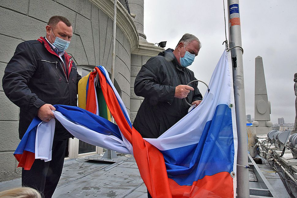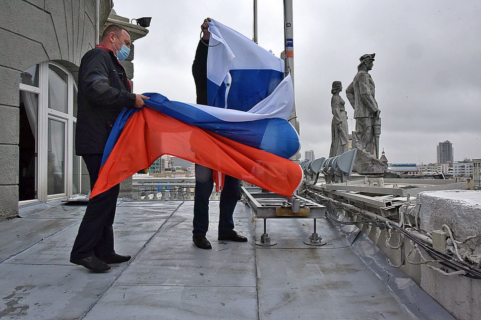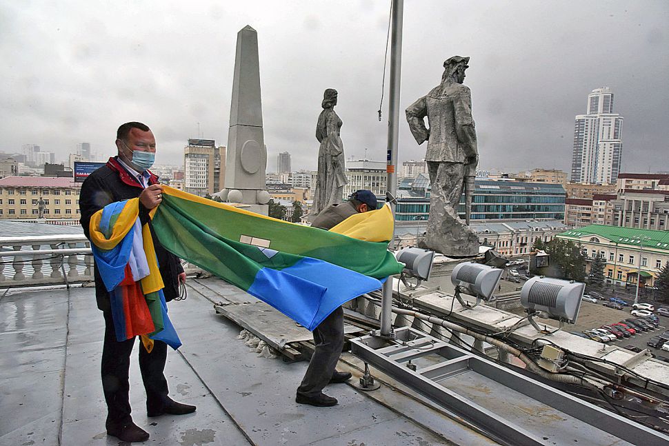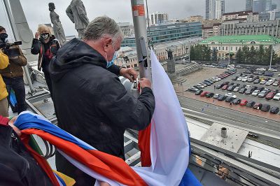 Фоторепортаж: на здании мэрии Екатеринбурга заменили российский триколор