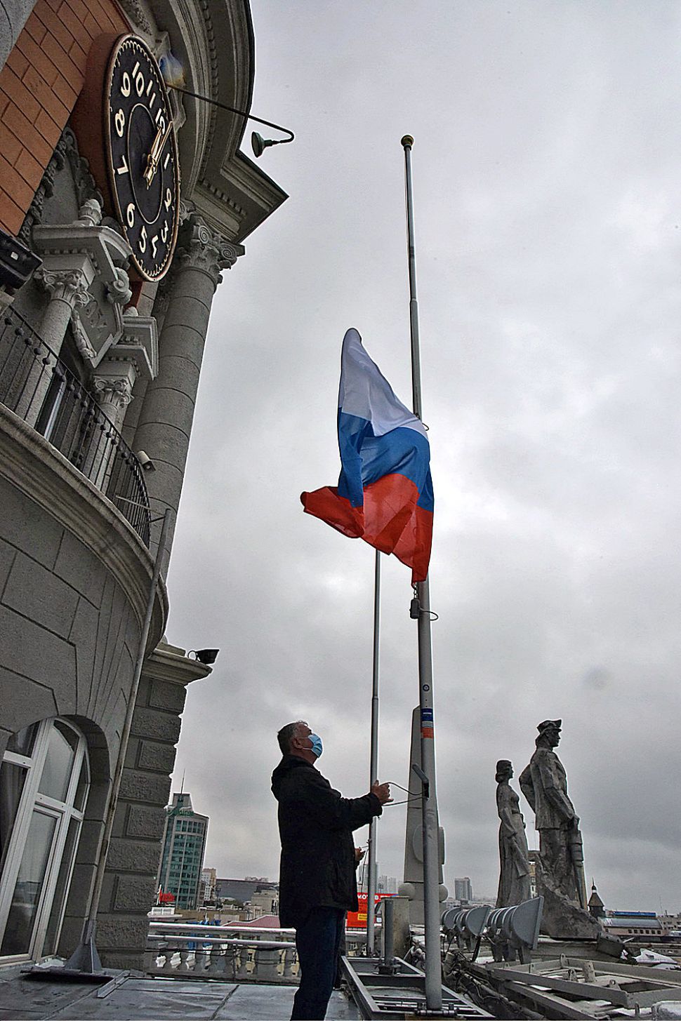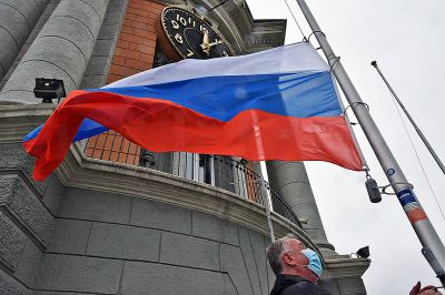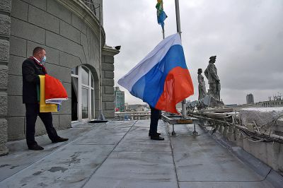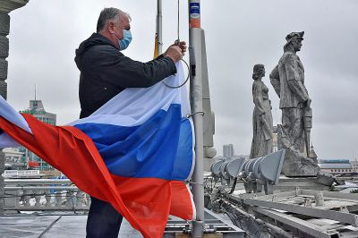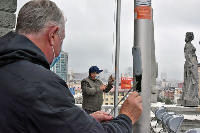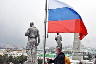 Российский стяг на здании администрации города Екатеринбурга заменяется по мере износа, в среднем – раз в два месяца.