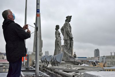 Сегодня, накануне Дня Государственного флага РФ специалисты МБУ «Управление зданиями Администрации города Екатеринбурга» обновили полотнище.