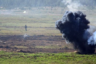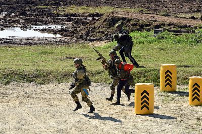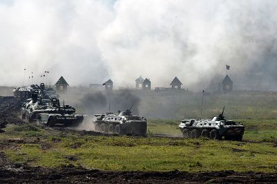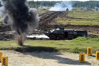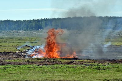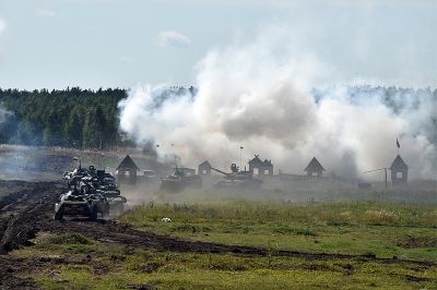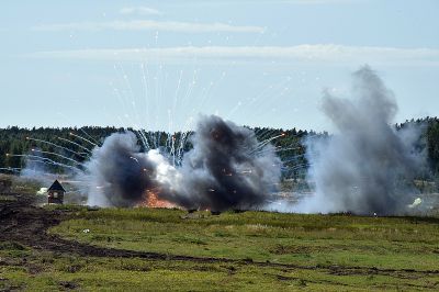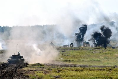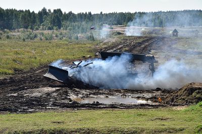 В учебном бою были задействованы бронетанковые и мотострелковые подразделения, робототехника, а также авиатехника ¬– Су-34, вертолеты Ми-8 и Ми-24.