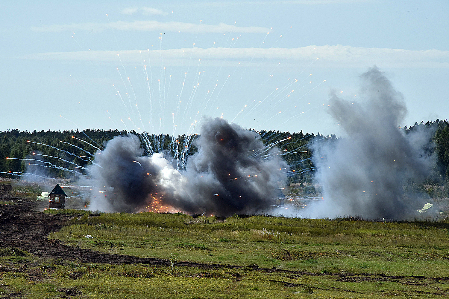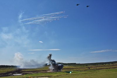 Фоторепортаж: на форуме «Армия-2020» прошел учебный бой по уничтожению террористов с участием авиации и бронетехники