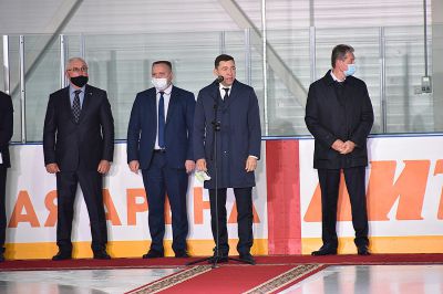Сегодня губернатор Евгений Куйвашев и генеральный директор УГМК Андрей Козицын открыли ледовую арену «Литейщик» в Сухом Логу.