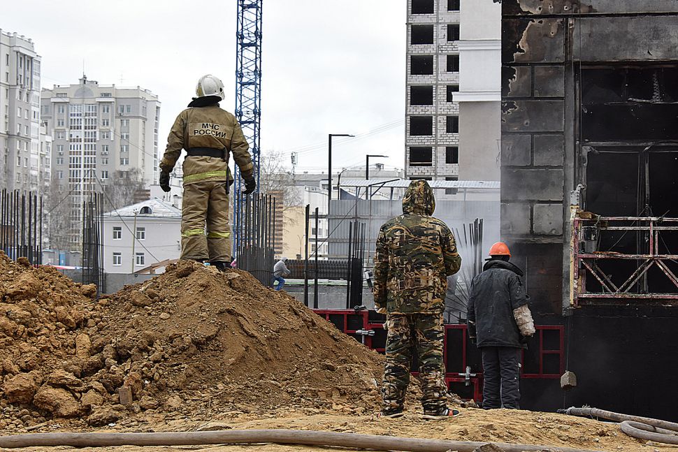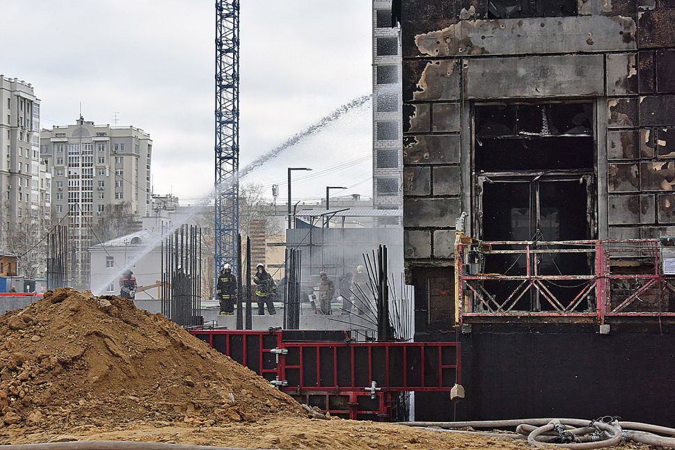 В МЧС по Свердловской области сообщили, что о пожаре в строящемся ЖК «Квартал "Федерация"» на улице Щорса, 53 стало известно в 10:57 – на место выехали три единицы техники.