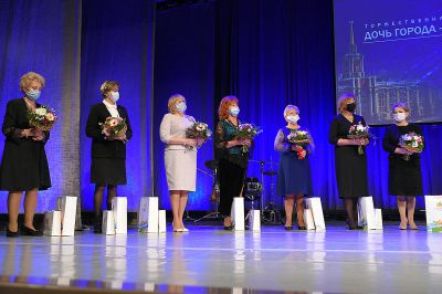 Специальные удостоверения и нагрудные знаки «Дочь города» из рук мэра Александра Высокинского и спикера гордумы Игоря Володина получили: министр культуры и член правительства Свердловской области Светлана Учайкина; заместитель директора по образовательной деятельности по организации учебного процесса УрФУ Галина Квашнина; заместитель главы Администрации Орджоникидзевского района по вопросам экономики и строительства Елена Ситкова; заместитель главного врача по медицинской части Центральной городской больницы № 3 Железнодорожного района Марина Мазурова; заслуженный врач РФ, заведующая поликлиникой № 1 Центральной городской клинической больницы № 24, врач-терапевт Раиса Титаренко; председатель Октябрьской районной организации профсоюза работников народного образования и науки РФ Лариса Кочнева и член городского Совета ветеранов Любовь Ледерер.