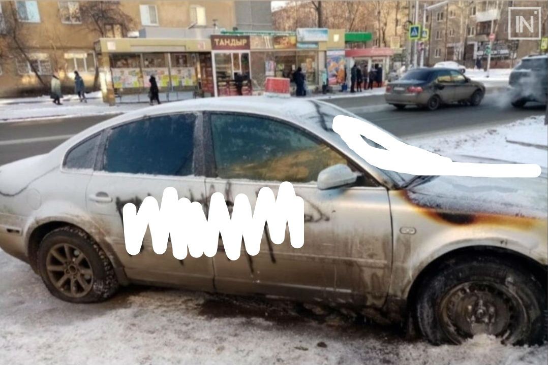 В Пионерском микрорайоне неизвестная написала ругательства на машине и пыталась ее поджечь