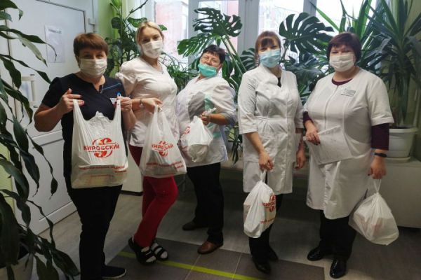 Медикам поликлиники Центральной городской больницы №7 Екатеринбурга, которые оказывают помощь больным коронавирусом, вручили 167 продуктовых наборов. Их передали от группы компаний «Кировский».