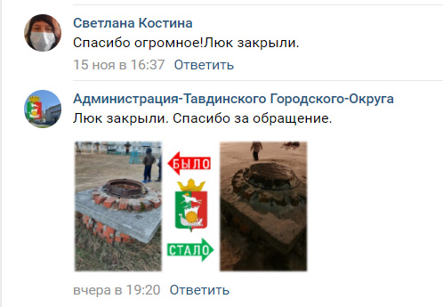 В администрации Тавдинского городского округа после поступления тревожных сигналов взяли адреса в работу и сообщили о решении проблемы — люки закрыли. Теперь гулять во дворе стало безопасно.