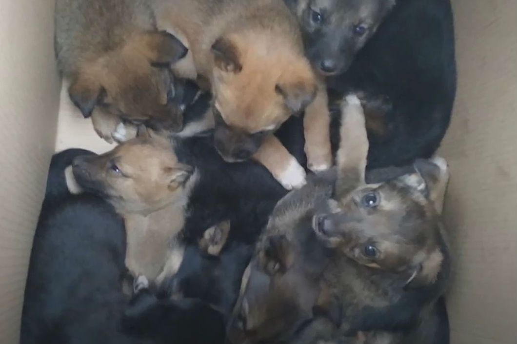 Десять щенков в коробке обнаружил утром у входа в Центр реабилитации животных УрГАУ в Екатеринбурге сотрудник.